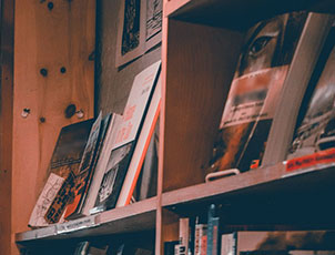As you approach this shelf, an moving image and a song plays. |