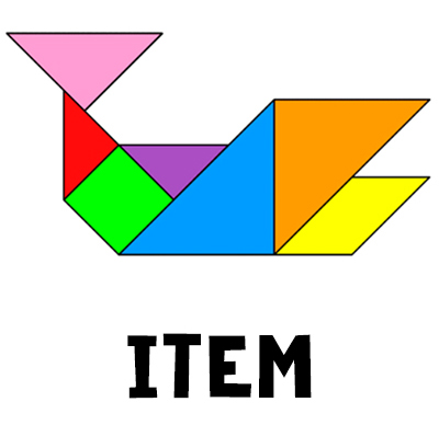 You find some tangram pieces on this shelf. Take a closer look. |